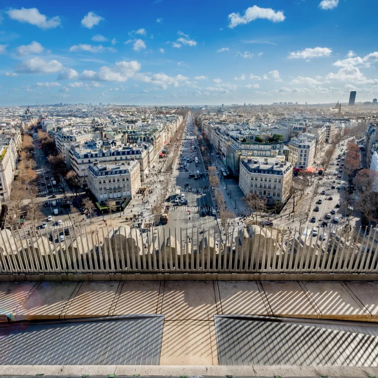 The guided tour of the Arc de Triomphe lasts 1? hours. An ascent to glory From Rude's "La Marseillaise" to the panoramic terrace: the Place de l'Étoile and Haussmann, the Unknown Soldier under the vaulted Napoleonic Arch and its vast interior spacesA unique viewpoint